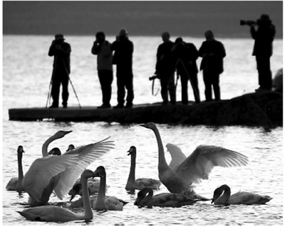 入冬以来,成群的白天鹅飞临山西平陆黄河湿地栖息越冬,吸引众多游人和摄影爱好者前来观赏、拍摄。薛俊 摄 (新华社发)