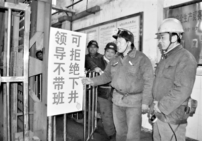 11月24日,山东丰源远航煤业公司赵坡煤矿一个采煤班的20余名职工准备下井作业。近日,该矿下发了“在无领导带班下井时,工人有权拒绝下井作业”的“红头文件”,并设立针对领导带班下井情况有奖举报电话,接受下井职工监督。 任伟 摄