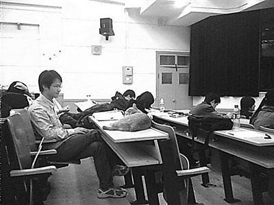 “学术猫”慵懒地躺在上课学生的书桌上。