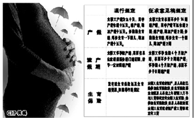 21日,国务院法制办公布了《女职工特殊劳动保护条例(征求意见稿)》并征求社会各界意见。《意见稿》中,关于产假天数和产假待遇的规定条款引起了社会的广泛关注。