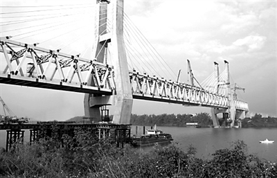 本报讯 11月22日,随着中铁三局员工将最后一根杆件冲钉的替换完成,造型新颖的南广铁路郁江双线特大桥主桥钢桁梁拼装胜利合龙,宣告南广铁路全线第一大重点控制性工程顺利贯通。