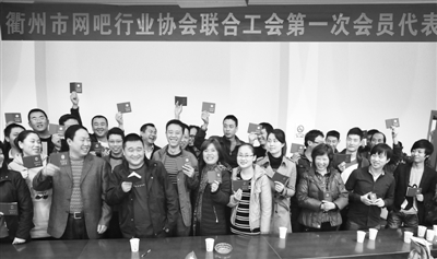 11月30日,浙江省衢州市网吧行业协会成立联合工会,由此,分散在全市的100余家网吧,320名员工加入了工会组织。今年,衢州市总工会积极探索流动人员入会工作,一批市场工会、楼宇工会、美容美发工会先后组建,让外来务工人员有了可以依靠的“家”。图为网吧员工加入工会组织后表达喜悦心情。本报特约通讯员 毛朝阳 摄