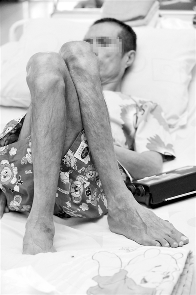 11月28日,在泰国中部华富里府足泉寺的晚期艾滋病患者病房,一名艾滋病患者躺在床上。