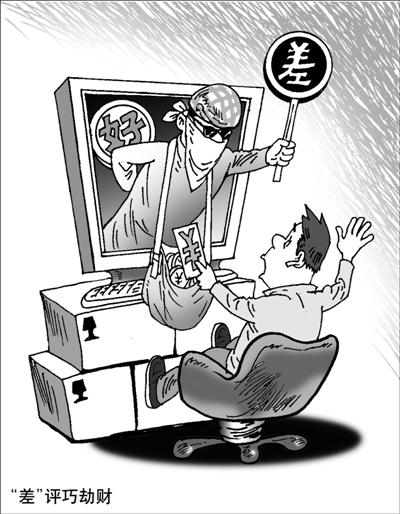 “毁誉参半”皆为钱。一边是“敲诈勒索,恶意碰瓷”,一边如“收人钱财,替人消灾”,都忙得不亦乐乎。而网络信誉、公众监督却被他们搅得如一潭浑水,真假难辨。