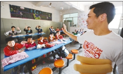图为万江龙到兴国县特殊教育学校看望孩子们。