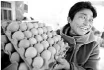 11月26日,在中疃镇张板桥村,艾滋病感染者戴廷贞刚刚领到政府发放的鸡蛋。