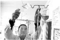 11月27日,在利辛县刘家集乡刘染村卫生室,村医张振江在给艾滋病感染者输液。