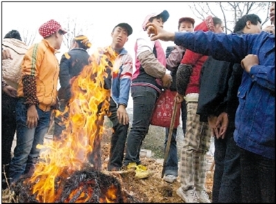 12月6日,贵阳气温下降,在工休的空闲时间,不少在室外干活的农民工纷纷在街头生火取暖。他们有的是在当地干活的贵州农民工,有的是路过此地的外来农民工,有的是露天干活的环卫工人。