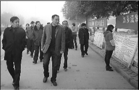 图为市人大党组成员、市总工会主席姚军柱(中)等现场观看宣传版面。李军现 梁晶晶 摄