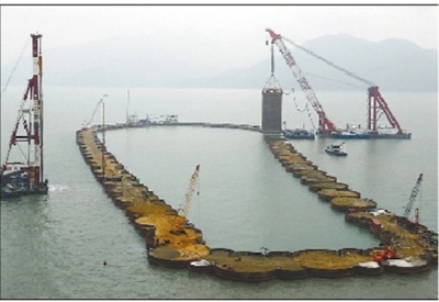 12月7日上午,珠海,港珠澳大桥重点工程之一的人工岛最后一个巨型钢圆筒将深入海底,人工岛主体结构工程完工。用钢圆筒来进行海中人工岛堤围勾勒,这一技术的运用在世界上尚属首次。港珠澳大桥是我国首座涉及“一国两制”三地的世界级跨海大桥,是继我国三峡工程、青藏铁路、京沪高铁之后的又一个世界级基础工程。赵梓 摄