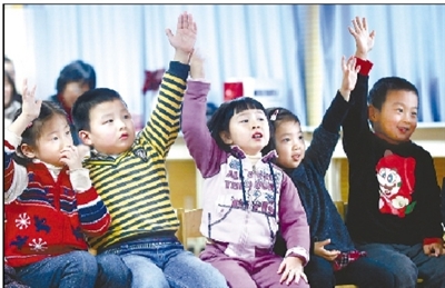 12月7日,上海市长宁实验幼儿园的小朋友在上“与朋友在一起”的公开展示课。