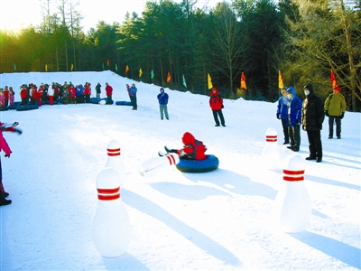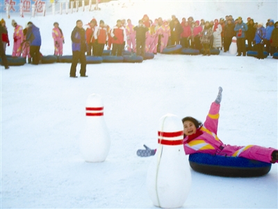 人体保龄球赛趣味性很强,不会滑雪也能参与。
