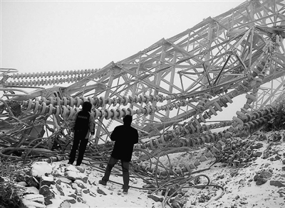 四川西昌:冰雪夜袭 铁塔倾倒