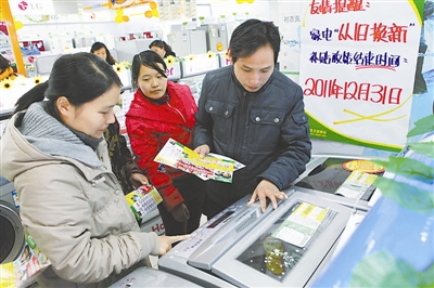 12月11日,江苏省赣榆县市民在一家卖场选购家电,赶搭以旧换新末班车。家电“以旧换新”将在本月31日终止实施,一些消费者赶在补贴政策到期前,抢搭优惠“末班车”。司伟 摄