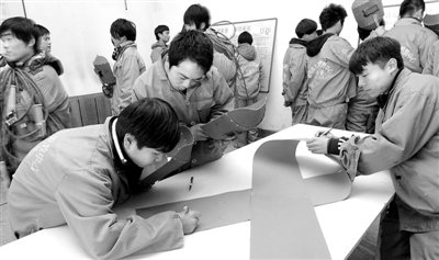 图为水电焊培训班90后农民工正开展别样活动。李铁成 摄
