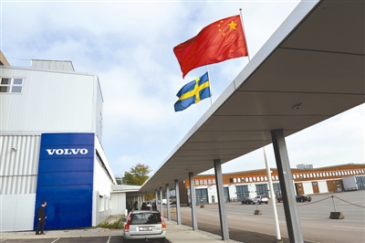 吉利使五星红旗飘在沃尔沃瑞典哥德堡工厂。 本报记者 姜文良 摄