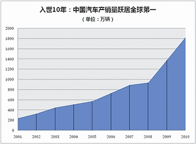 WTO的确给中国汽车产业带来发展机会。在2010年,中国已经成为世界上最大的汽车产销国家,达到1800万辆,并且几乎所有的汽车品牌都把中国当作未来竞争格局的必争之地。