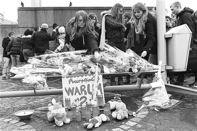 当地时间12月14日,比利时列日市民众来到圣朗贝尔广场,用鲜花和蜡烛哀悼遇难同胞。图为悼念现场。肖劼 供图