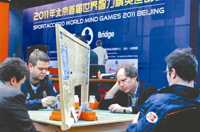 12月14日,在北京首届世界智力精英运动会桥牌的比赛现场。本报记者 许之丰 摄