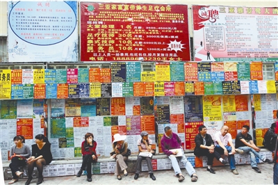 12月14日,海南三亚,琳琅满目的招聘信息吸引了众多求职者。随着年关渐近,受到“用工荒”影响,“春节工”、“寒假工”等短期工受到青睐。陈文武 摄