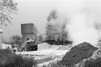 12月14日,陕西咸阳市渭城区底账镇韩家村,石灰加工厂遍及村庄附近。工人在为货车装石灰,附近的树木被石灰罩上了白色。“今年家里苞谷全被毁了,在地里时上面就是一层白灰,收回来在房顶晾晒,白灰又落了厚厚一层,叫人咋吃嘛!”12月14日下午,陕西咸阳市渭城区底张街道办韩家村村民韩宝红看着离他家不足百米的白灰厂眉头紧缩。目前,这里30多户村民在经营白灰加工,粉尘到处飞…… 汤继颖 摄