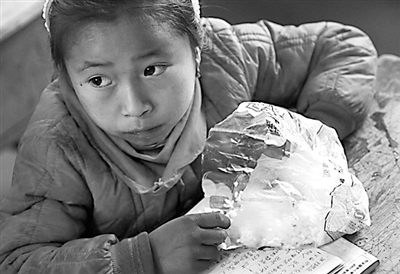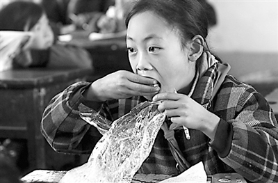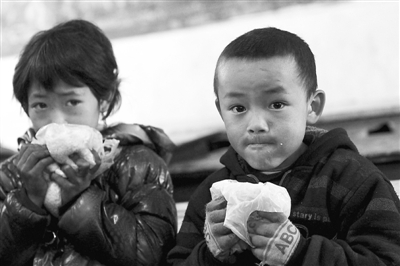 位于四川凉山彝族自治州喜德县则约乡中心小学,由于设施简陋、经费有限,目前,学校还不能为学生提供午餐。于是,少数学生会用塑料袋捎上家里的隔夜饭在中午充饥,而大多数家庭贫困的学生一天只能吃上早晚两顿。对于该校500多位学生来说,能吃上一顿热气腾腾的午饭已成为他们最大的期盼。