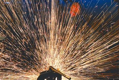 11月10日下午,在中铁二十一局兰新二线工地上,来自湖南的29岁小伙子史本灵在焊接钢筋,来这一年有余的他每天需要焊接近1000条钢筋,总重可达10吨。