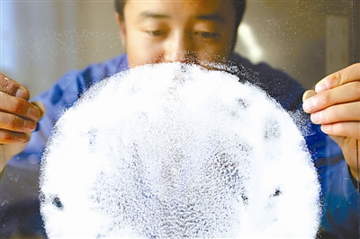 11月12日,在青海盐湖工业股份有限公司化工分公司质量管理部,一名工人正在进行成品分析。这个部门的42个人七成以上都是本科以上学历,平均年龄不到30岁。