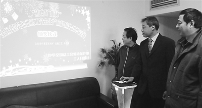 12月20日,中华全国总工会劳动保护部和工人日报社联合举行“蒲白矿业杯”全国煤矿企业职工安全生产应知应会知识竞赛抽奖仪式,现场抽出一等奖1名,二等奖3名,三等奖5名,最佳班组参赛奖3名,并选定了最佳组织奖和优秀参赛奖。全国总工会劳动保护部副部长徐恩毅、工人日报社副总编张刃等出席了抽奖仪式,图为抽奖现场。郭一丁 摄
