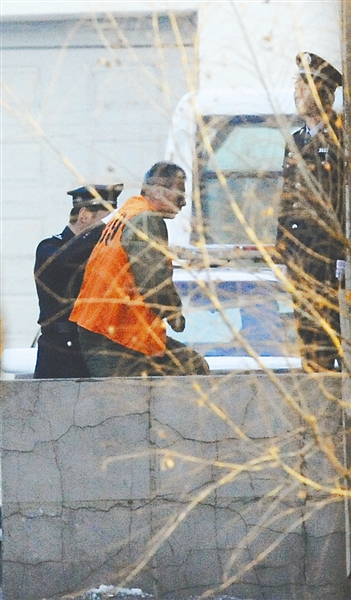 12月21日,犯罪嫌疑人杨一民(中)在警察的看押下走进铁岭市中级人民法院。当日,中国足球假赌黑案继续在辽宁铁岭、丹东两地审理。