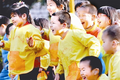 2011年11月24日,上海启英幼儿园操场上,失聪的孩子们正在尽情玩耍。我国有0岁至6岁听障儿童13.7万人,其中84.7%为重度、极重度听力残疾。“十二五”期间中央财政将为1.6万名重度、极重度听障儿童免费植入人工耳蜗,为1.2万名重度以下听障儿童免费验配助听器。