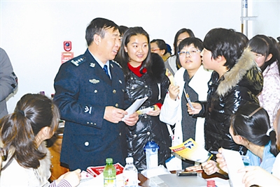 12月14日,锦州铁路公安处会同锦州车务段和锦州车站有关人员来到渤海大学校园,向师生们详细介绍了铁道部春运期间出台的多项便民利民措施。杜铭 摄