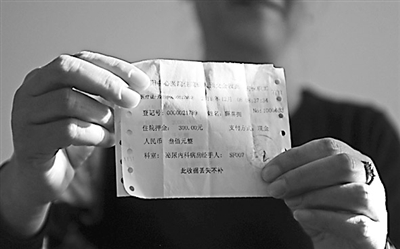 ②患者薛喜拥的家属陈玉姝在展示刘胜阳医生将他们的“红包费”存入住院费的收据。