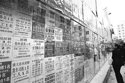 12月14日,随着年关渐近,三亚市的一些餐饮店、家政等服务行业纷纷在街头近百米招聘专栏贴出招聘启事。 陈文武 摄