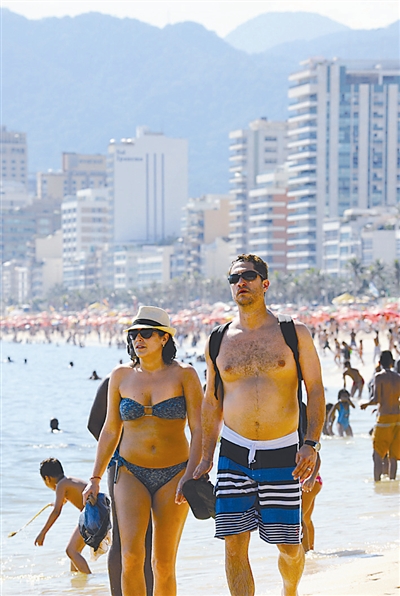 巴西近日持续30摄氏度以上高温,很多人来到伊帕内马海滩欢度圣诞假期。