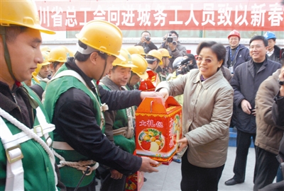 四川省委常委、省总工会主席李登菊给一线职工送去了温暖。