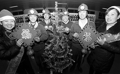 12月24日,安徽淮北矿业童亭矿综采队与灯房班共结“平安果”和“中国结”,喜迎新年。陈磊 摄