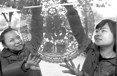 12月26日,安徽六安供电公司营业大厅的班组员工贴窗花、挂中国结,营造浓厚的新年喜庆气氛。 翁怀龙 摄