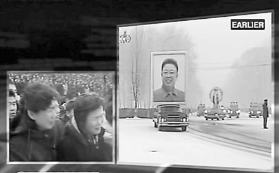 图:12月28日的电视截图显示,朝鲜各界群众在平壤参加朝鲜最高领导人金正日遗体告别仪式。 新华社发