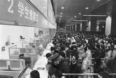 当日,天津站火车票临时售票处投入使用,开始预售春运火车票,临时售票处共开设15个窗口,专设学生票窗口。 新华社记者 岳月伟 摄