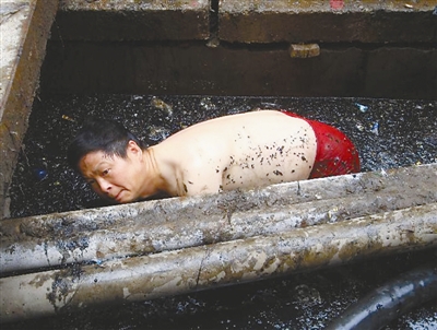 最男人——7月13日,抢修武汉汉正街电缆故障时的“裸身”一跳,刘跃青显示了中国男人的责任。
