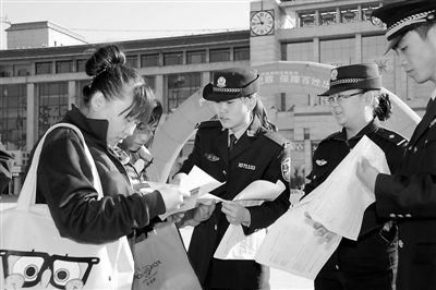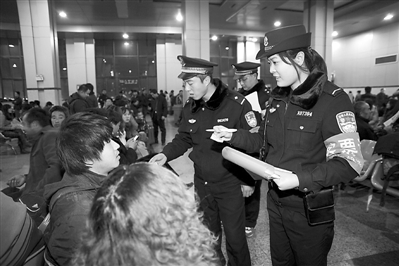 为给春运期间旅客出行和铁路运输创造良好治安环境,大同铁路公安处加大了火车站治安整治力度,通过多种方式对旅客群众宣传有关法律法规,抽调警力对违法嫌疑人进行清理整治。