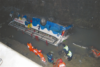发生翻车事故的大客车核载53人,实载56人。这辆从浙江义乌开往四川泸州的大客车行至兰海高速都匀往贵阳方向1765千米加500米处时,由于当地降大雪,路面结冰,侧翻至高速公路桥下。