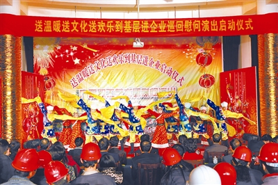 六是将开展送温暖活动与开展“送文化、送欢乐”进企业进基层活动相结合。为不断充实送温暖活动的内容,自治区总工会从2011年起,在元旦春节期间将开展送温暖活动与开展“送欢乐、送文化”进企业进基层活动结合在一起,组织广西职工艺术团到全区各市(县)企业、工地,为一线职工群众送去了30多场丰富多彩的慰问演出,丰富了广大职工群众和农民工的精神文化生活,推动了各地群众性文化娱乐活动的广泛开展。