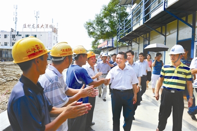 广西壮族自治区政协副主席、自治区总工会主席李达球到工地看望职工。