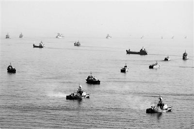 自2011年12月24日至2012年1月3日,伊朗海军在南部海域举行了为期10天的代号为“守卫90”的大规模海上军演。1月3日,在军演最后一天,伊朗在南部海域举行了海上阅兵。吉平 供图