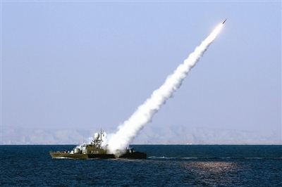 伊朗海军在1月1日的军演中成功试射一枚新型导弹。 新华社发(易卜拉欣·诺鲁兹摄)