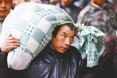 1月7日,一名旅客在南京火车站扛着包裹准备上车,当日是全国铁路春运启动的前一天。 新华社发(王新 摄)