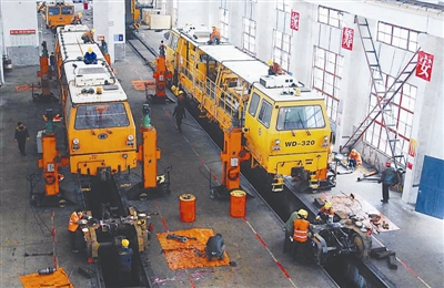 为确保江西、福建节日高铁的安全养护工作,鹰潭工务机械段集中精力对占该段近50%的24台大型养路机车进行全面架车解体、探伤、内窥以及键点检查和定期保养等工作。 胡国林 赵蔚平 摄