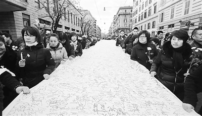 当天,维托里奥广场及周边区域的许多华人商户都关闭自己的店铺走上街头,表达对逝者的哀思和对凶案的愤怒,同时也呼吁意大利当局尽早破案并采取切实措施改善罗马的安全形势。不过,与往常意大利人集会游行声嘶力竭、高呼口号的形式不同,当天,除了偶尔有人喊出“拒绝暴力,和谐发展”的口号之外,华人华侨们更多地用一种无声的方式表达心愿和诉求。从维托里奥广场到佩雷斯特莱罗广场,华人华侨的游行队伍绵延一两公里。人流尽管无声无语,表达的哀思与愤怒却无垠无边。罗马当地华侨、遇害者周先生亲属的朋友杨迪熙表示:“今天我们的游行是以默哀的形式来进行的,我们不想打扰死者的安息。我们以无声的方式表达我们的心声诉求,通过这次游行向死者做出最后的告别。”
